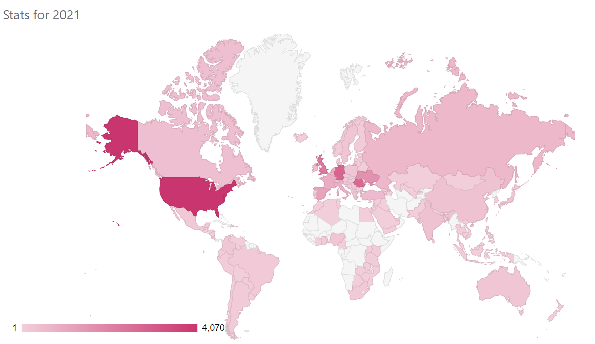 In 2021 the most visitors came from places like US, Germany, Romania, UK and Ukraine.