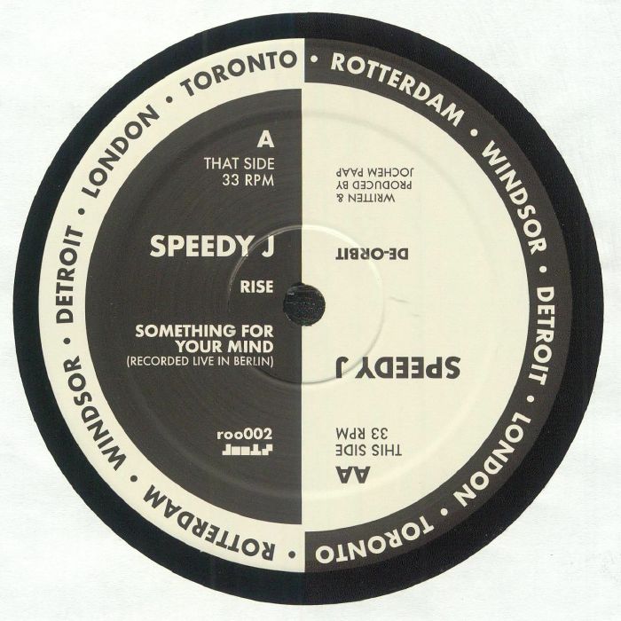 Remastered reissue of the second landmark EP for Plus 8 Records by Speedy J. Again expanding on the emerging sounds of Techno Speedy J took it further into euphoric, minimal lofi and bleepy territory with ”Rise”, ”Tresor” and ”De-orbit”. All while effectively stripping it down to the bare bones rocking only a 909 and a vocal sample on ”Something For Your Mind”. This release and in particular ”Something For Your Mind” was there at the forefront of techno as we know it these days with a harder, raw and no-nonsense approach and all its variations such as Gabber that grew out of that in Rotterdam the following year.